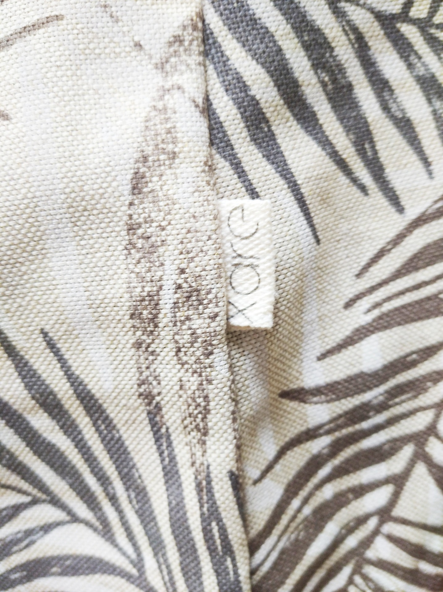 Oihalaren diseinua: atzealde beixa eta marroi nahiz gris tonuko hostoak dituen diseinua. Barnealdeko forroa gris iluna da.